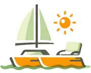Icon of a sailboat with a heart flag and sun, symbolizing personalized sailing experiences and comfort on Cocoa Beach Catamaran tours.